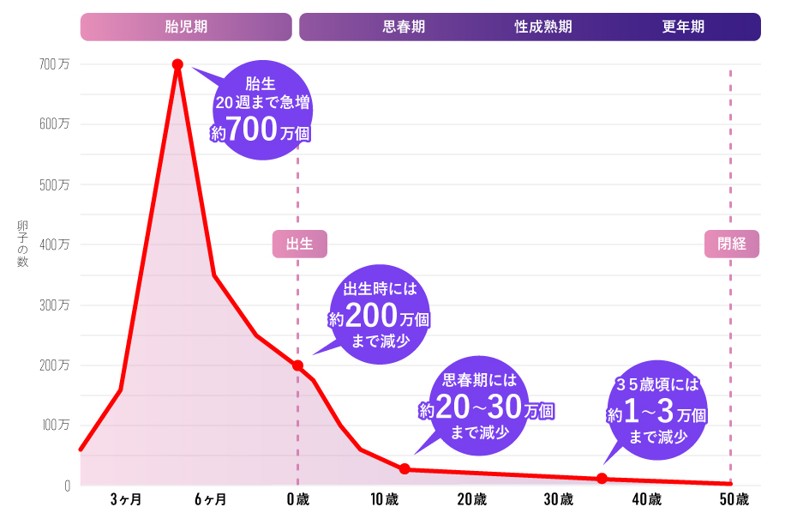 こうした中、両者に直面する最大の壁は、年齢に伴う「卵子の数」と「妊娠力」の不可逆的な低下です。胎児期に約700万個あった卵子は、出生時、思春期を経て減少を続け、35歳頃には約1〜3万個にまで激減します。※4 日本では現在、約9人に1人が体外受精によって誕生していますが、※5 自己卵子による体外受精の出産率は35歳を境に急減する傾向にあります。※6「不妊治療」が一般化する一方で、治療が必要になる前の段階で自身の心身の状態を正しく把握し、将来の妊娠に備えて生活習慣を整える「プレコンセプションケア(妊娠前の健康管理)」の普及は、いまや社会全体の急務となっています。