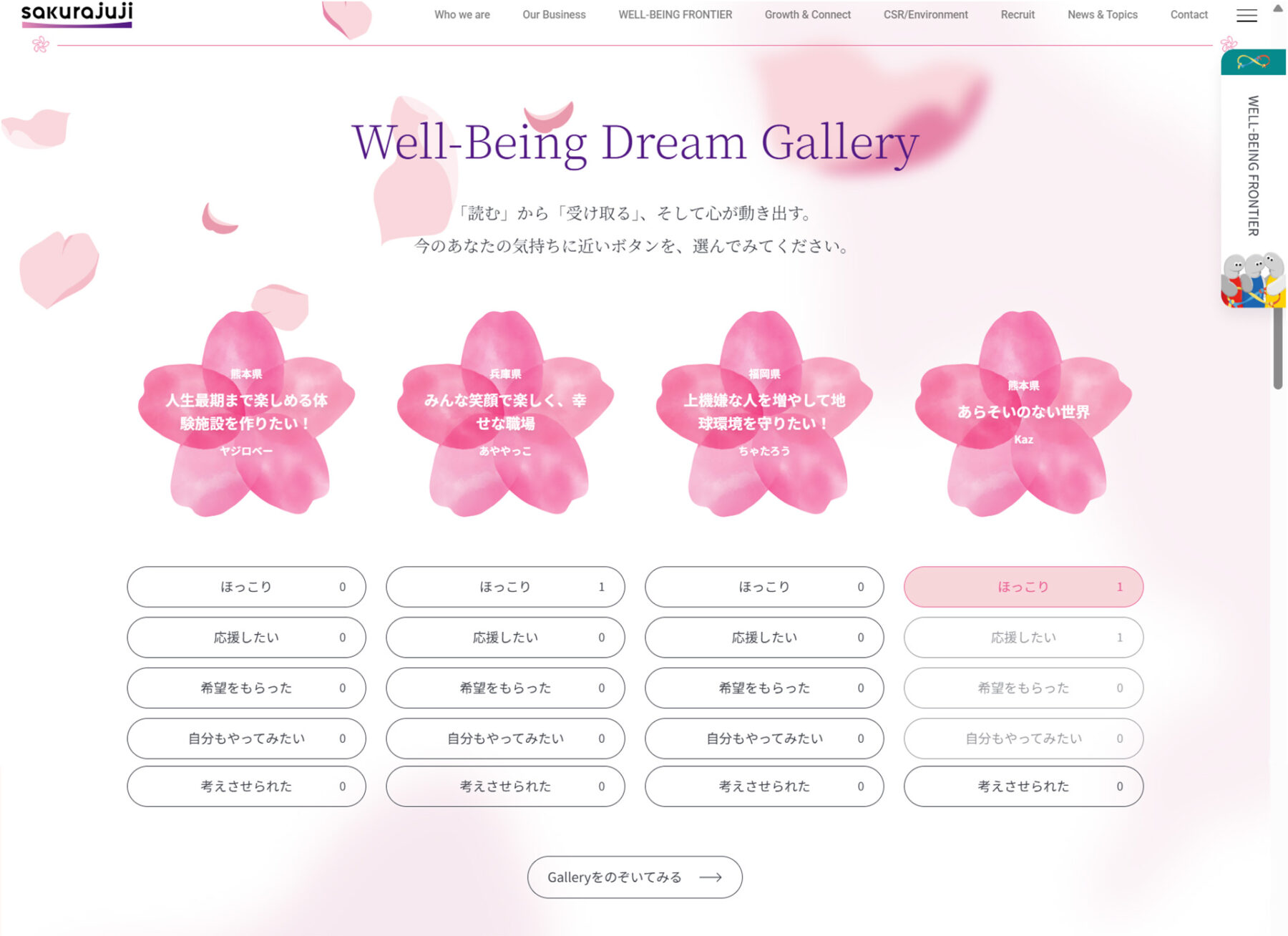 本ページでは、みなさまから寄せられた夢がデジタルの花となって咲き誇り、それをご覧になった方が「ほっこり」「応援したい」「希望をもらった」「自分もやってみたい」「考えさせられた」といった共感の気持ちを届けることができます。
