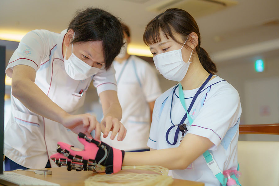 桜十字先端リハビリテーションセンターSACRAが北九州市立大学と共同で開発した「手指リハビリテーション支援システムNarem(ナレム)」が、2024年8月に共同特許を取得しました。Naremは、脳卒中や脊髄損傷などによる手指麻痺を改善することを目的として、産学医工連携で開発されたリハビリ支援ロボットで、麻痺手にグラブを装着することで、手指特有の巧緻運動の再現が可能であり、脳への連続的な刺激により従来の治療法を上回る効果が得られると期待されています。