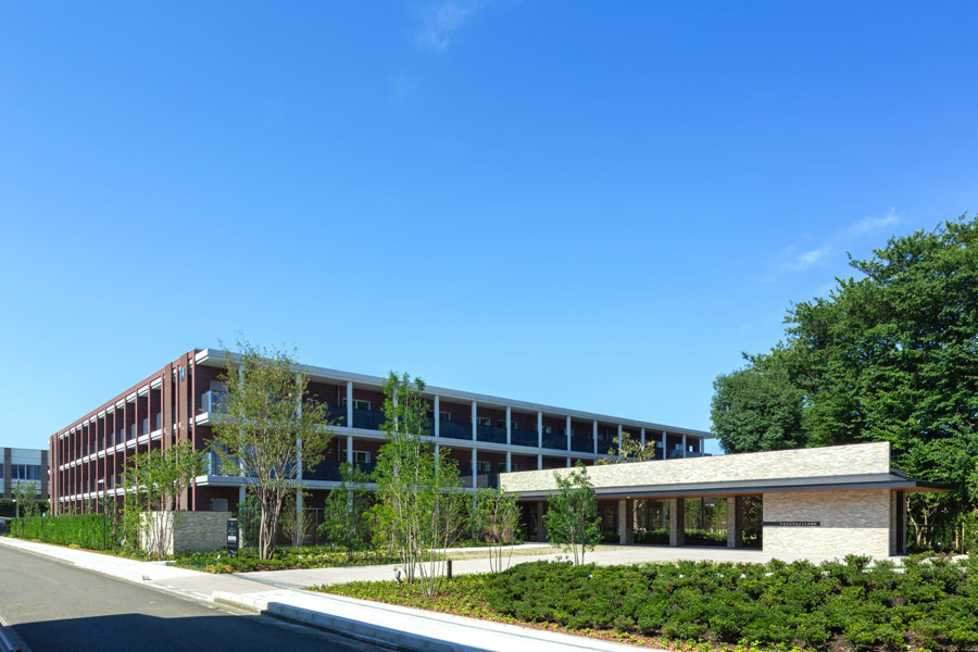 武蔵野市の閑静な住宅街に建つ有料老人ホームの計画。メインコンセプトである「居住者を孤立させない人と人を結ぶ空間」を実現するために、建物の中央に設けた3層吹抜の機能訓練室と中庭の2つの大空間の周りに居室が並ぶロの字型の空間構成としました。また、街並に調和し、建築・構造・環境の三位一体となった外観デザインや、ホテルライクなインテリアデザインに加え、建物の長寿命化、災害対策、豊かな外構によるJHEP_AA、バリアフリー認定の取得等、細部にわたって密度の濃い計画とすることで有料老人ホームの枠組を超えたこれからの時代に相応しい建築を実現した。